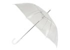 Bílý svatební deštník klasického tvaru. Doporučujeme pro nevěsty nebo pro svatební hosty.