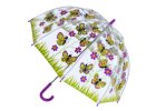 Veselý dětský deštník z průhledného PVC, s větruodolnou konstrukcí a potiskem roztomilých kachniček.