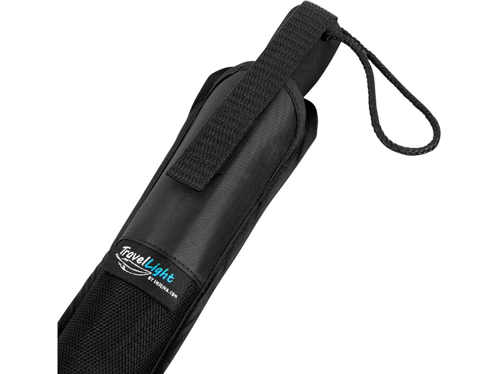 Ultralehký cestovní deštník s pevným pouzdrem s popruhem na rameno.