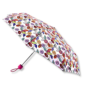 FULTON MINILITE dámský lehký skládací deštník klasické velikosti. Deštník plný lučních květin. Sem tam najdete na potahu i berušku.