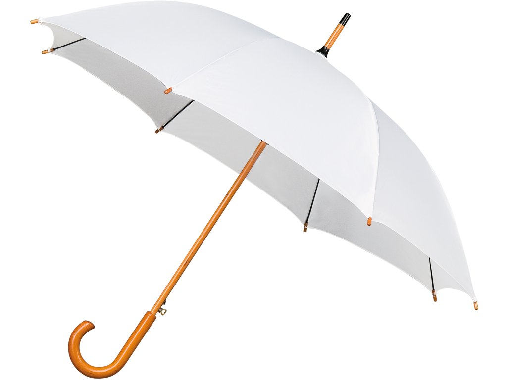 Dřevěná hůl, rukojeť, špička a koncovky drátů dávají tomuto deštníku nestárnoucí eleganci.