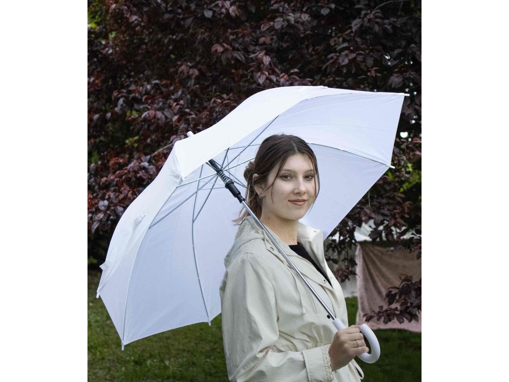 POUZE U NÁS - čistě bílý deštník klasického tvaru.