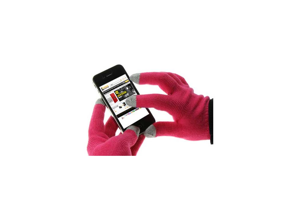 Rukavice se speciální úpravou na dvou prstech (elektricky vodivý materiál na konečcích prstů) pro používání mobilních telefonů s dotykovým displejem.