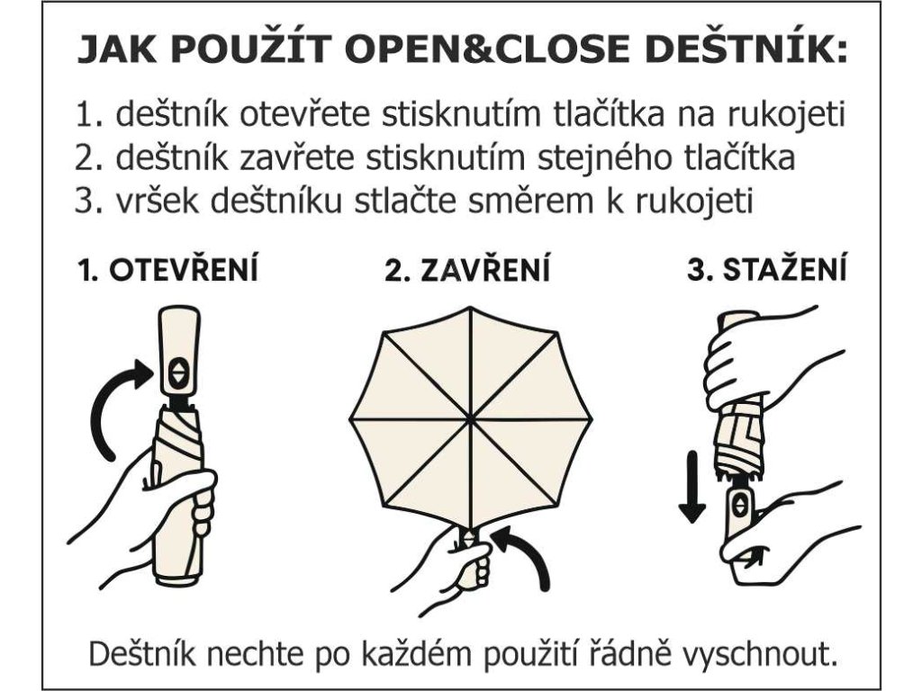 - deštník nechte po použití vždy řádně vyschnout