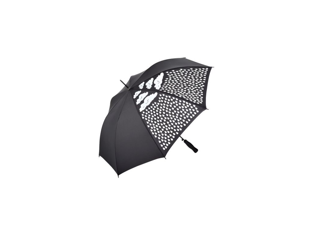 Kouzlo je v tom, že když je deštník suchý, obrázek kapek a mráčku je bílý. Při kontaktu s vodou se na potahu objeví duha díky colormagic efektu.