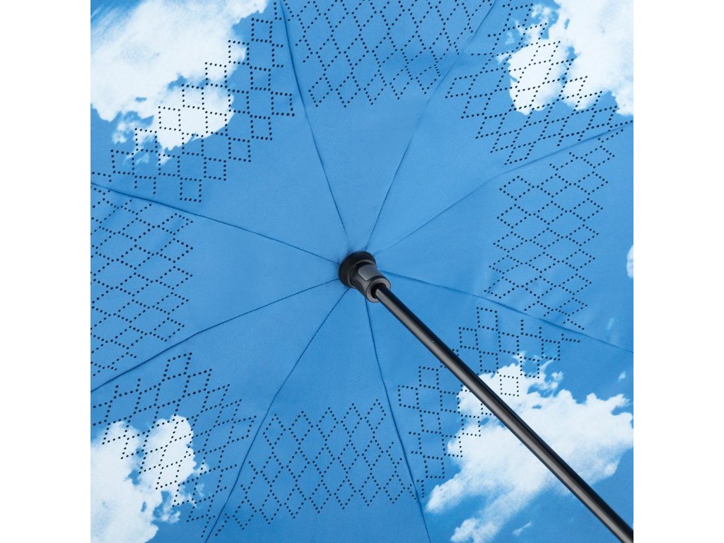 Zcela nová konstrukce zajistí, že voda zůstane v uzavřeném deštníku a až budete chtít deštník usušit, jednoduše ho postavíte na vhodné místo a voda vyteče.