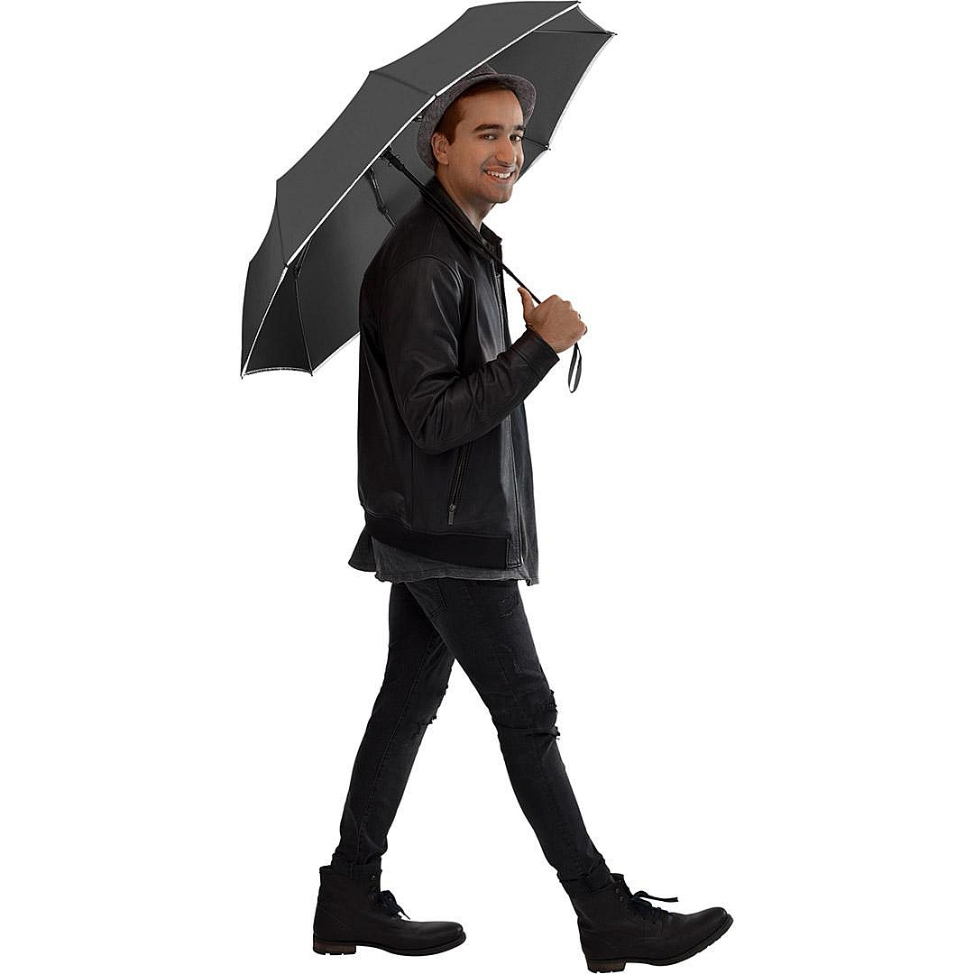 Reflexní deštník se kterým vás určitě nikdo nepřehlédne. Skládací deštník v ČERNÉ barvě s reflexním lemováním po obvodu potahu.