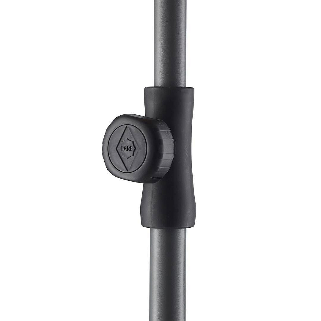 Hůl slunečníku je kovová v moderní titanové úpravě a na konci má plastový hrot.