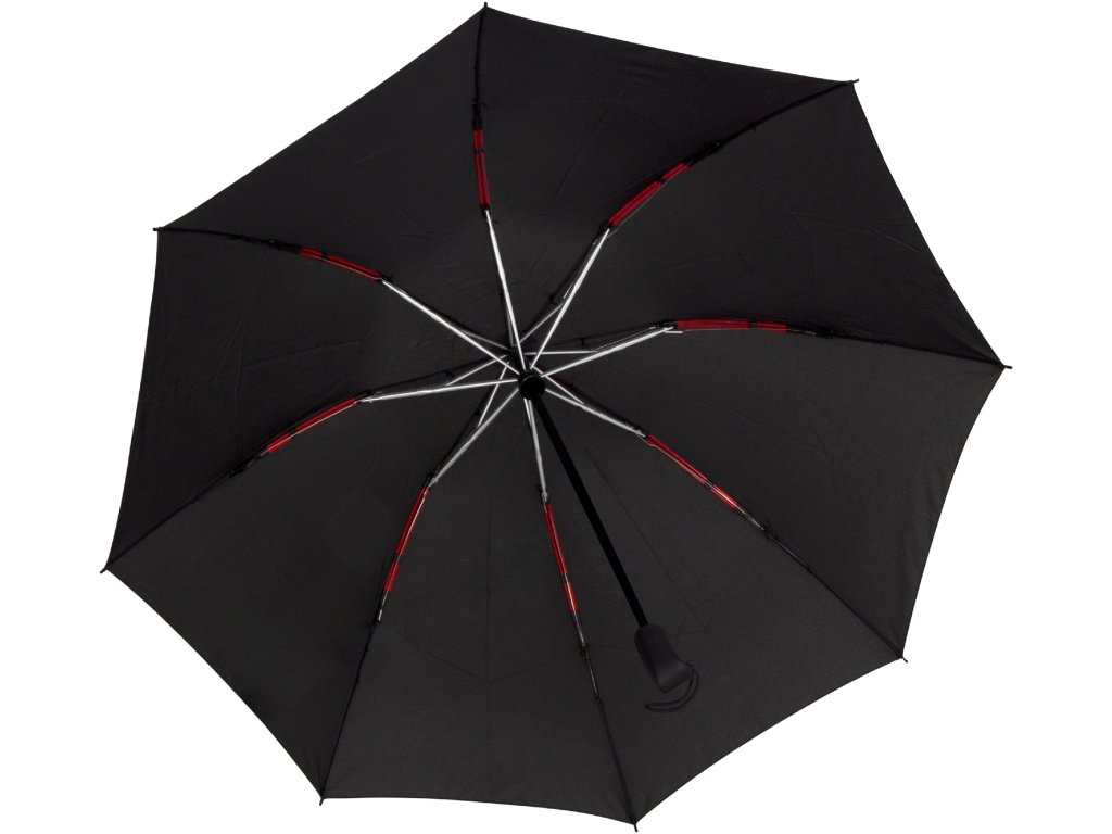 Skládací obrácený deštník se zajímavými barevnými prvky v konstrukci.